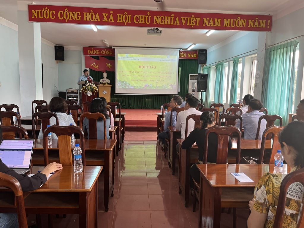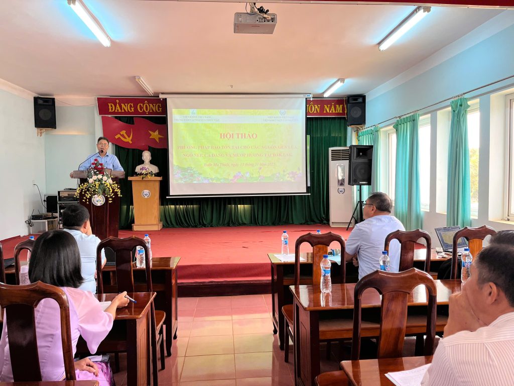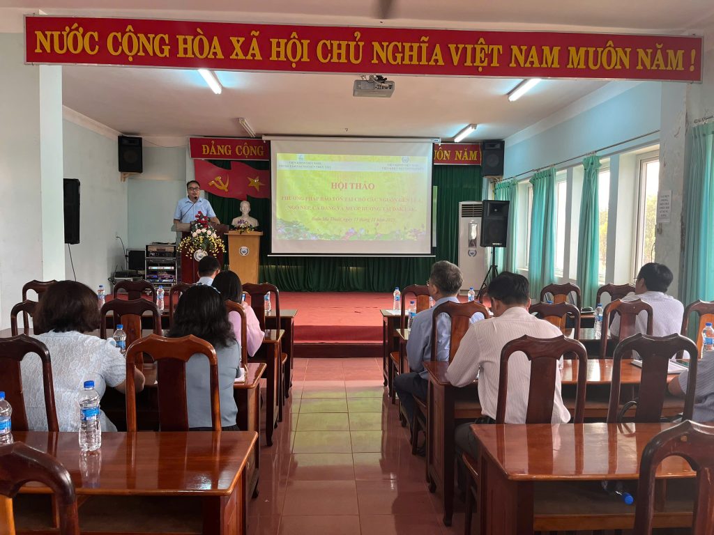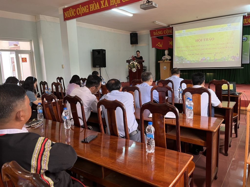 Sáng ngày 13/11/2025, Trung tâm Tài nguyên thực vật phối hợp với Viện Khoa học kỹ thuật Nông lâm nghiệp Tây Nguyên tổ chức Hội thảo phương pháp bảo tồn tại chỗ nguồn gen cây trồng bản địa (lúa, ngô nếp, cà đắng và mướp hương) tại Đắk Lắk, trong khuôn khổ nhiệm vụ KH&CN tỉnh Đắk Lắk: “Bảo tồn một số nguồn gen cây trồng bản địa ngắn ngày (lúa, ngô, cà đắng và mướp hương) của tỉnh Đắk Lắk, do Trung tâm Tài nguyên thực vật chủ trì thực hiện từ tháng 12/2024 -12/2025.