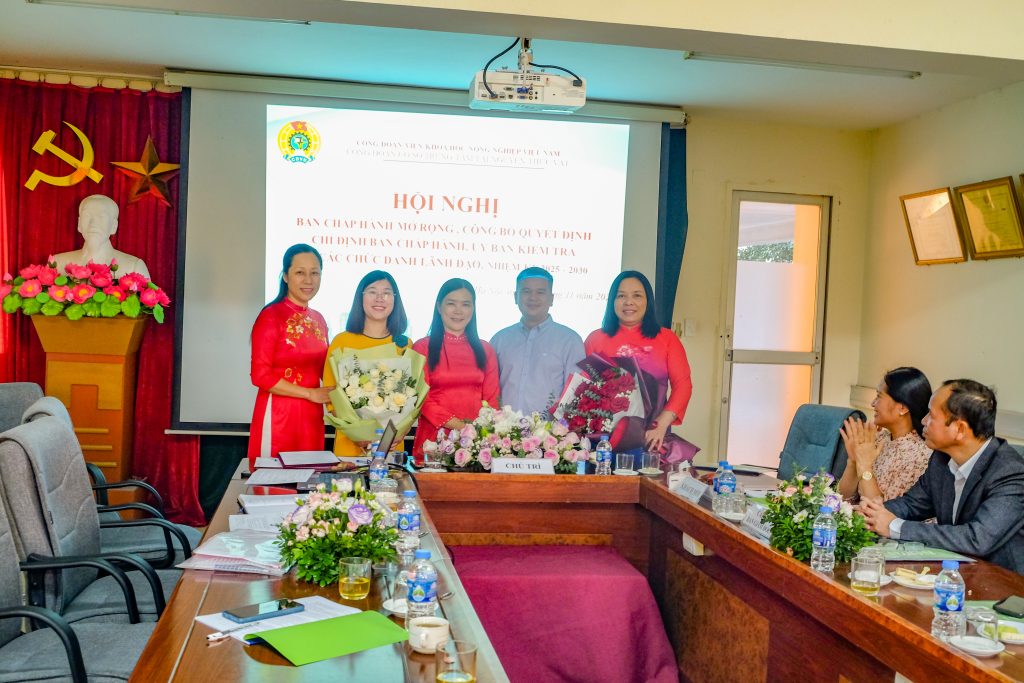 Tại Hội nghị, đồng chí Hoàng Thị Hiền công bố quyết định chỉ định Ban chấp hành và UBKT và các chức danh lãnh đạo chủ chốt của Công đoàn Trung tâm Tài nguyên thực vật nhiệm kỳ 2025 – 2030. Ban Chấp hành Công đoàn Trung tâm Tài nguyên thực vật nhiệm kỳ 2025 – 2030 gồm 5 đồng chí, trong đó đồng chí Hoàng Thị Nga được Công đoàn Viện KHNN Việt Nam tín nhiệm giao trọng trách nhiệm vụ Chủ tịch Công đoàn.