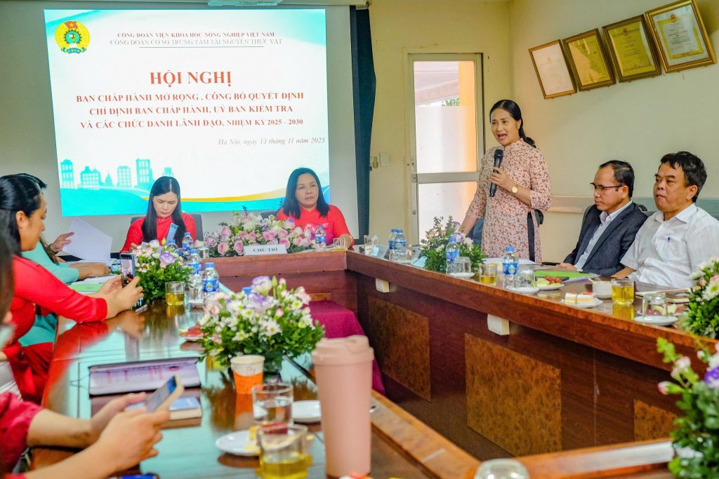 Ngày 13 tháng 11 năm 2025, Công đoàn cơ sở Trung tâm Tài nguyên thực vật đã tổ chức Hội nghị Mở rộng Ban Chấp hành Công đoàn, công bố các Quyết định chỉ định Ban Chấp hành, Ủy ban Kiểm tra và các chức danh lãnh đạo Công đoàn nhiệm kỳ 2025 – 2030.