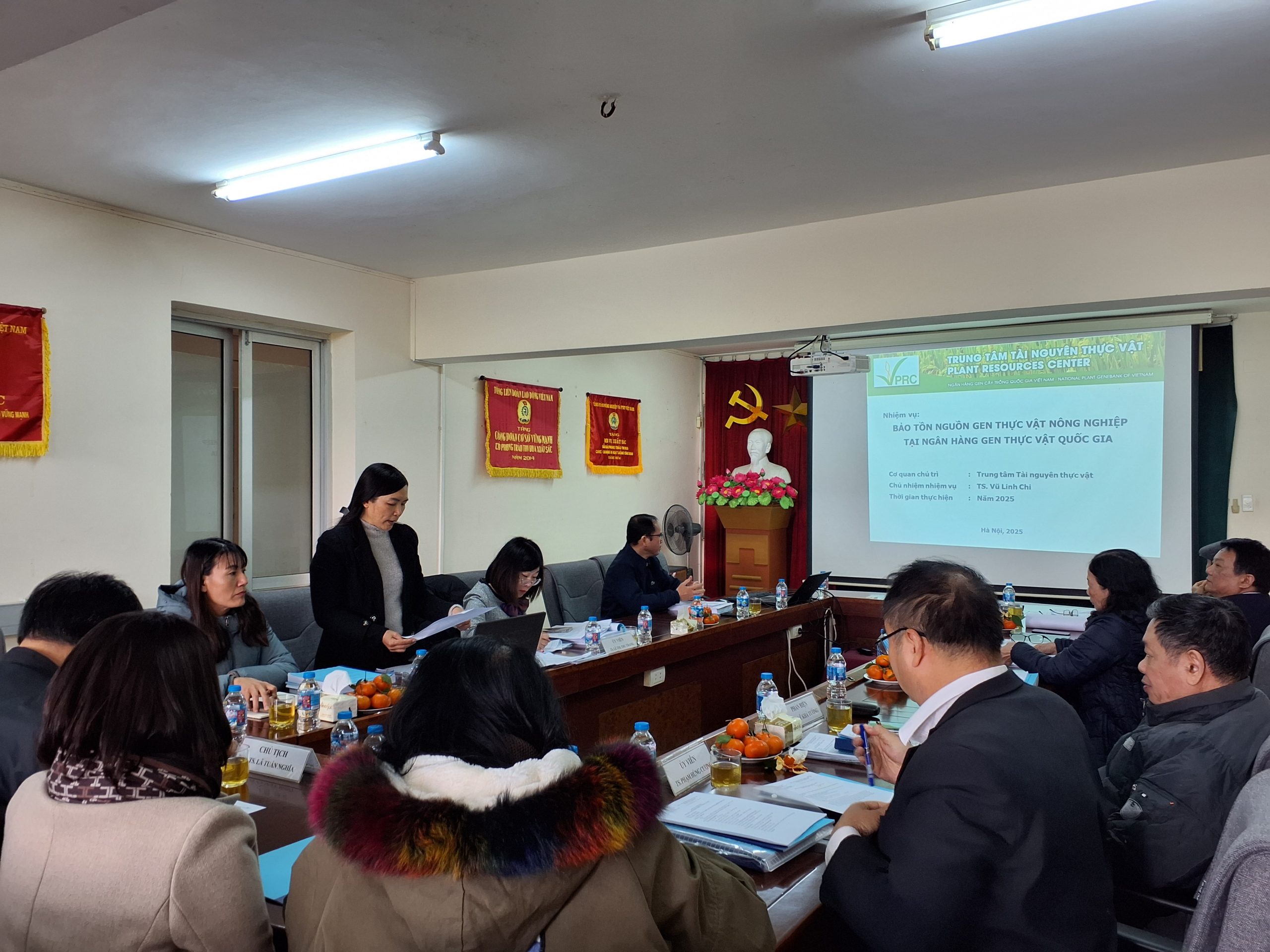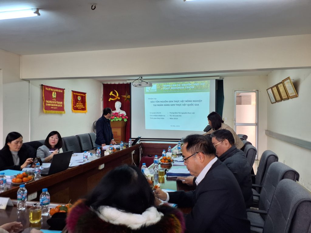 Trung tâm Tài nguyên thực vật vừa tổ chức họp Hội đồng đánh giá, nghiệm thu cấp cơ sở nhiệm vụ khoa học năm 2025: “Bảo tồn nguồn gen thực vật nông nghiệp tại ngân hàng gen thực vật quốc gia”, do TS. Vũ Linh Chi làm chủ nhiệm. Hội đồng được thành lập theo Quyết định số 664/QĐ-TTTN-KH ngày 23/12/2025 của Trung tâm Tài nguyên thực vật, do PGS.TS. Lã Tuấn Nghĩa làm Chủ tịch. Tham dự buổi nghiệm thu có đại diện Lãnh đạo Trung tâm, Lãnh đạo các đơn vị trực thuộc và các cán bộ trực tiếp tham gia thực hiện nhiệm vụ.
