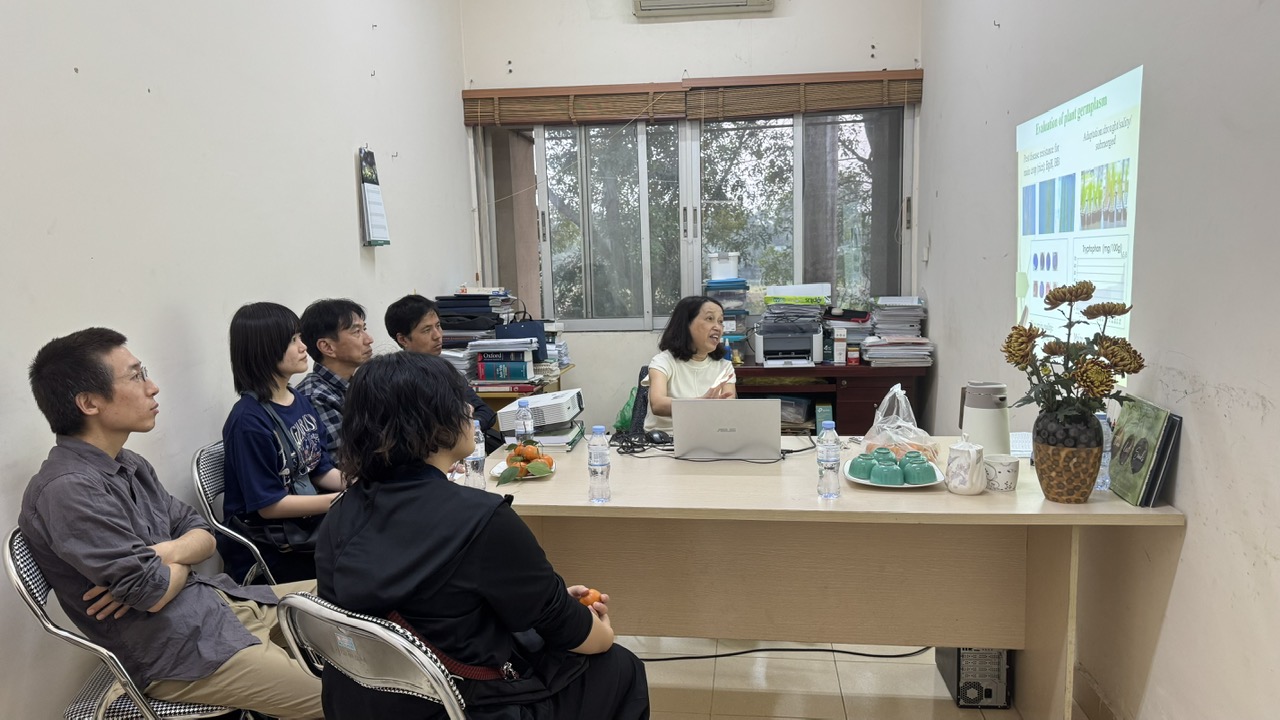 Nhằm thúc đẩy hợp tác quốc tế trong lĩnh vực bảo tồn và đánh giá tài nguyên di truyền thực vật, Trung tâm Tài nguyên thực vật đã đón tiếp và làm việc với đoàn chuyên gia đến từ Viện Nghiên cứu Nông nghiệp và Lương thực Quốc gia Nhật Bản (NARO). Chuyến thăm được thực hiện trong khuôn khổ dự án “Mô tả và đánh giá tài nguyên di truyền thực vật phục vụ mục tiêu lương thực và nông nghiệp”, do TS. Trần Thị Thu Hoài làm chủ nhiệm, triển khai trong giai đoạn 2024–2026.