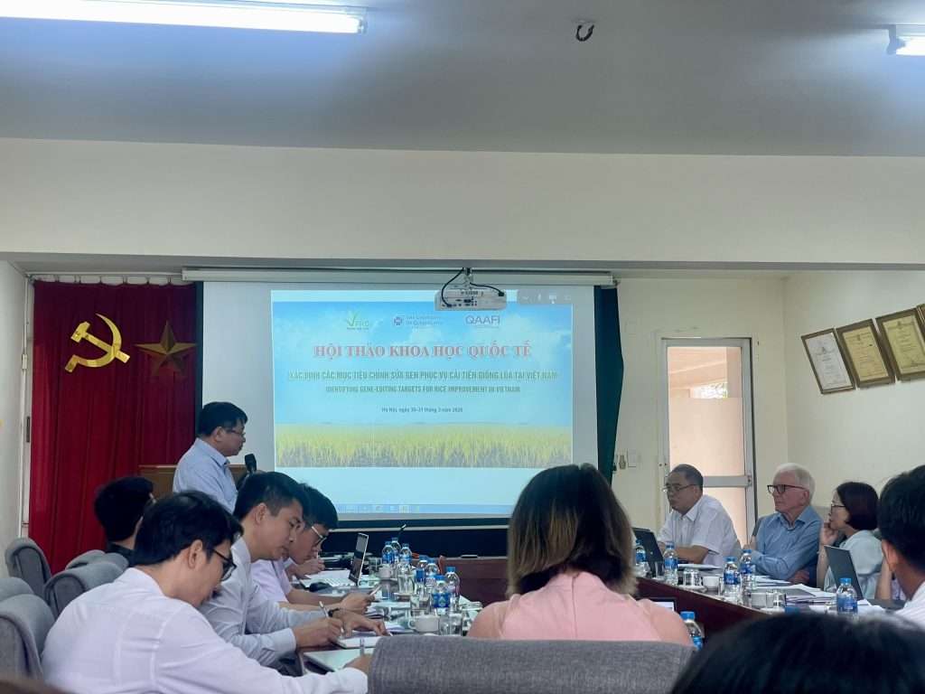 Ngày 30/3/2026, tại Trung tâm Tài nguyên Thực vật, Hội thảo khoa học quốc tế “Xác định mục tiêu chỉnh sửa gen phục vụ cải tiến giống lúa tại Việt Nam” đã được tổ chức với sự phối hợp của QAAFI – Đại học Queensland (Úc). Sự kiện góp phần cụ thể hóa định hướng của Nghị quyết 57-NQ/TW về phát triển khoa học, công nghệ, đổi mới sáng tạo và chuyển đổi số, trong đó công nghệ sinh học và chỉnh sửa gen được xác định là lĩnh vực ưu tiên.